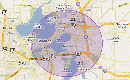 A surcharge of $5.00 per visit is applied for visits up to 9 miles outside the service area indicated above.